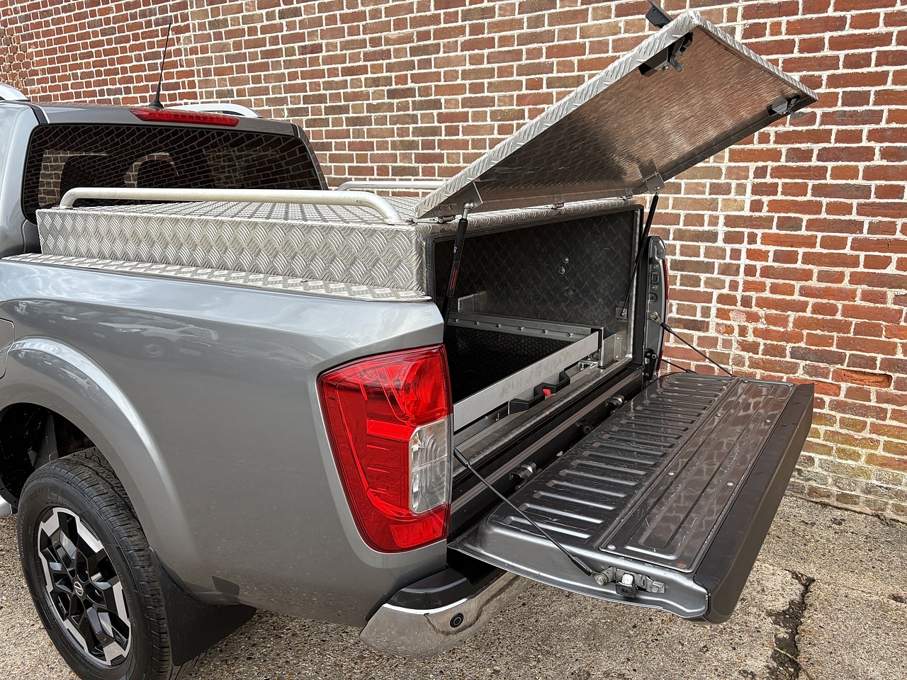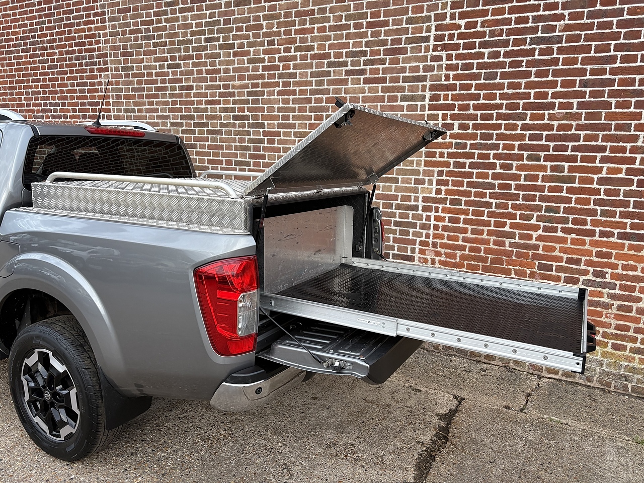 1 Local Owner, Full Nissan Service History, Air Con, Climate Control, Sat Nav, Apple Car Play/ Android Auto, Cruise Control + Speed Limiter, Bluetooth Phone and Audio, Aux and USB Connectivity, DAB Radio, Electric Windows, Electric Heated Mirrors, Electric Driver’s Seat, Heated Front Seats, Black Leather Interior, 360° Surround Camera, Rear Parking Sensors, Bespoke N&J Aluminium Linings Manufactured Aluminium Chequer Plate Box with Integrated Slide Out Tray and Roof Mounted Lashing Rails, Side Steps, 18” Diamond Cut Alloys.